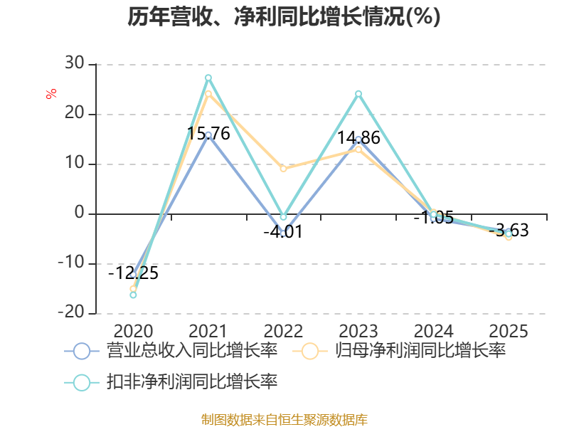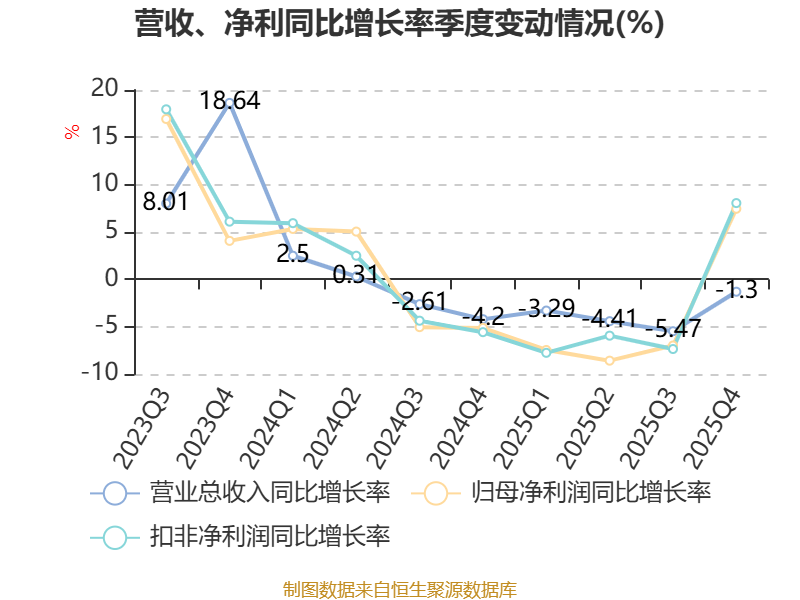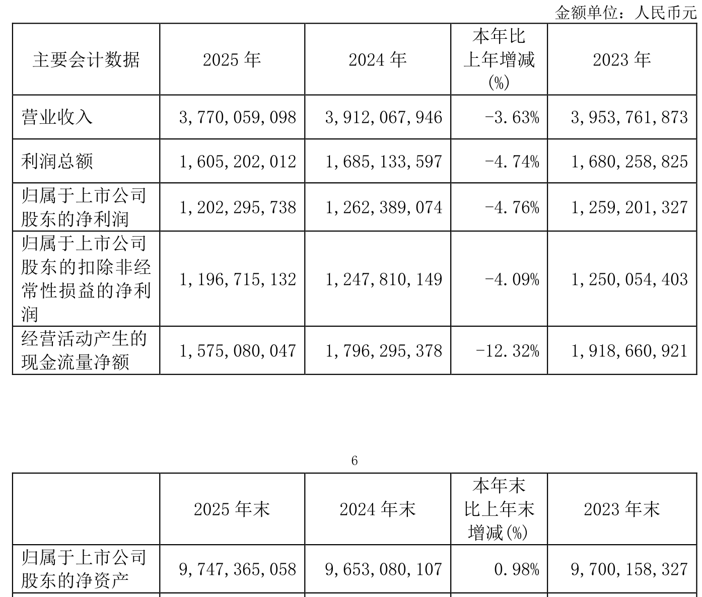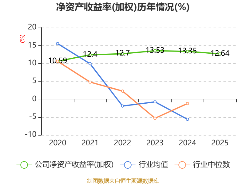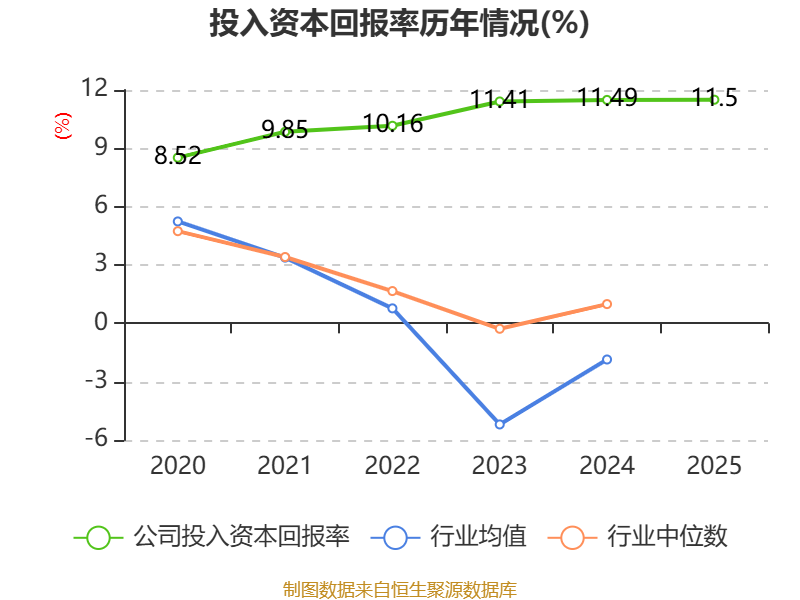 数据显示,2025年公司加权平均净资产收益率为12.64%,较上年同期下降0.71个百分点。公司2025年投入资本回报率为11.5%,较上年同期上升0.01个百分点。