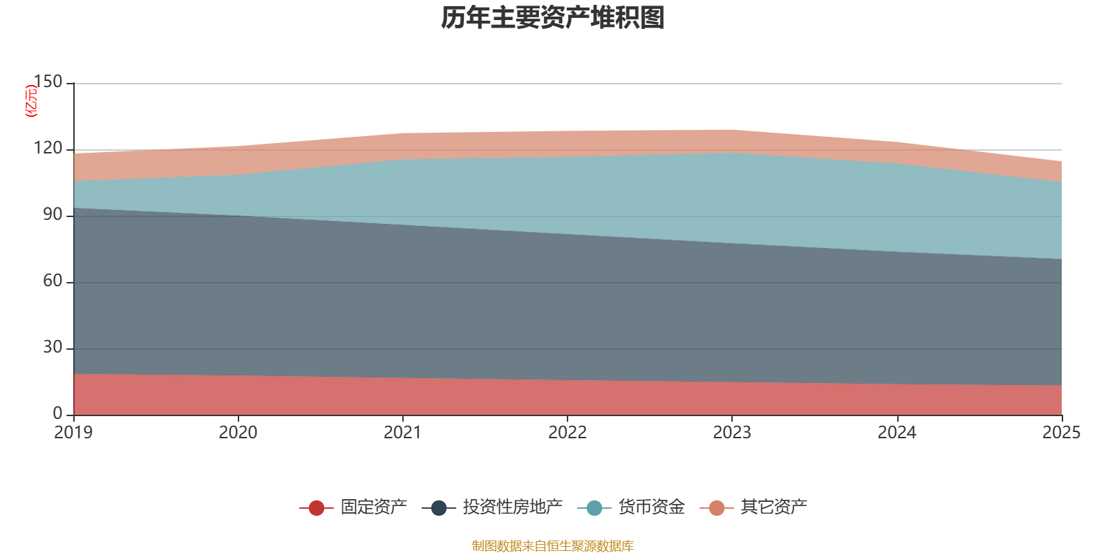 资产重大变化方面,截至2025年末,公司货币资金较上年末减少12.57%,占公司总资产比重下降1.92个百分点;投资性房地产较上年末减少4.41%,占公司总资产比重上升1.39个百分点;固定资产较上年末减少4.89%,占公司总资产比重上升0.26个百分点;无形资产较上年末减少3.57%,占公司总资产比重上升0.13个百分点。