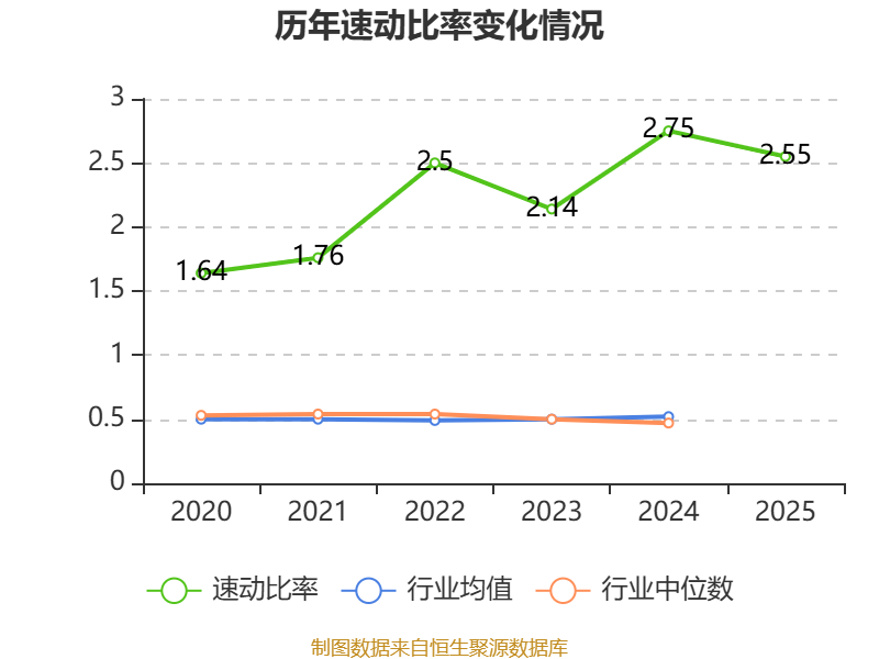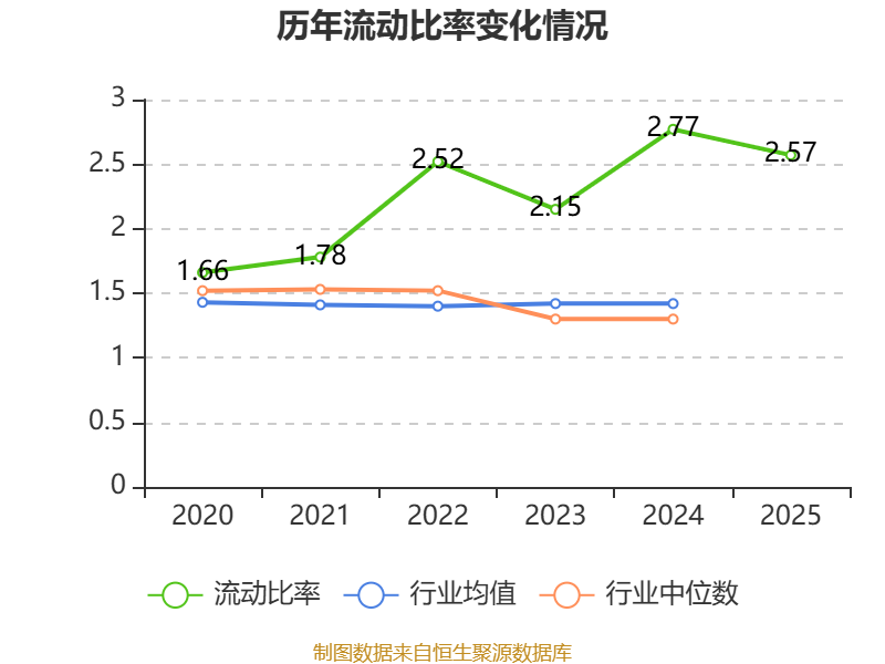 2025年,公司流动比率为2.57,速动比率为2.55。