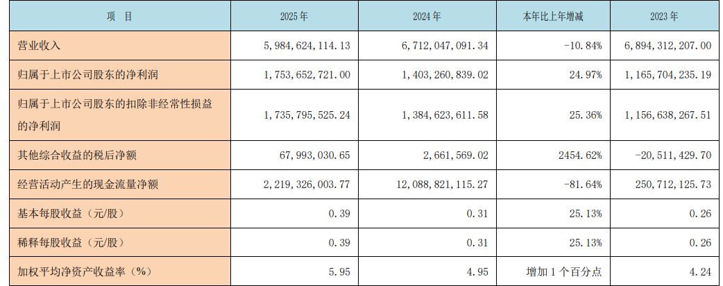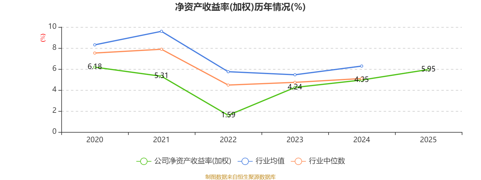 数据显示,2025年公司加权平均净资产收益率为5.95%,较上年同期上升1个百分点。