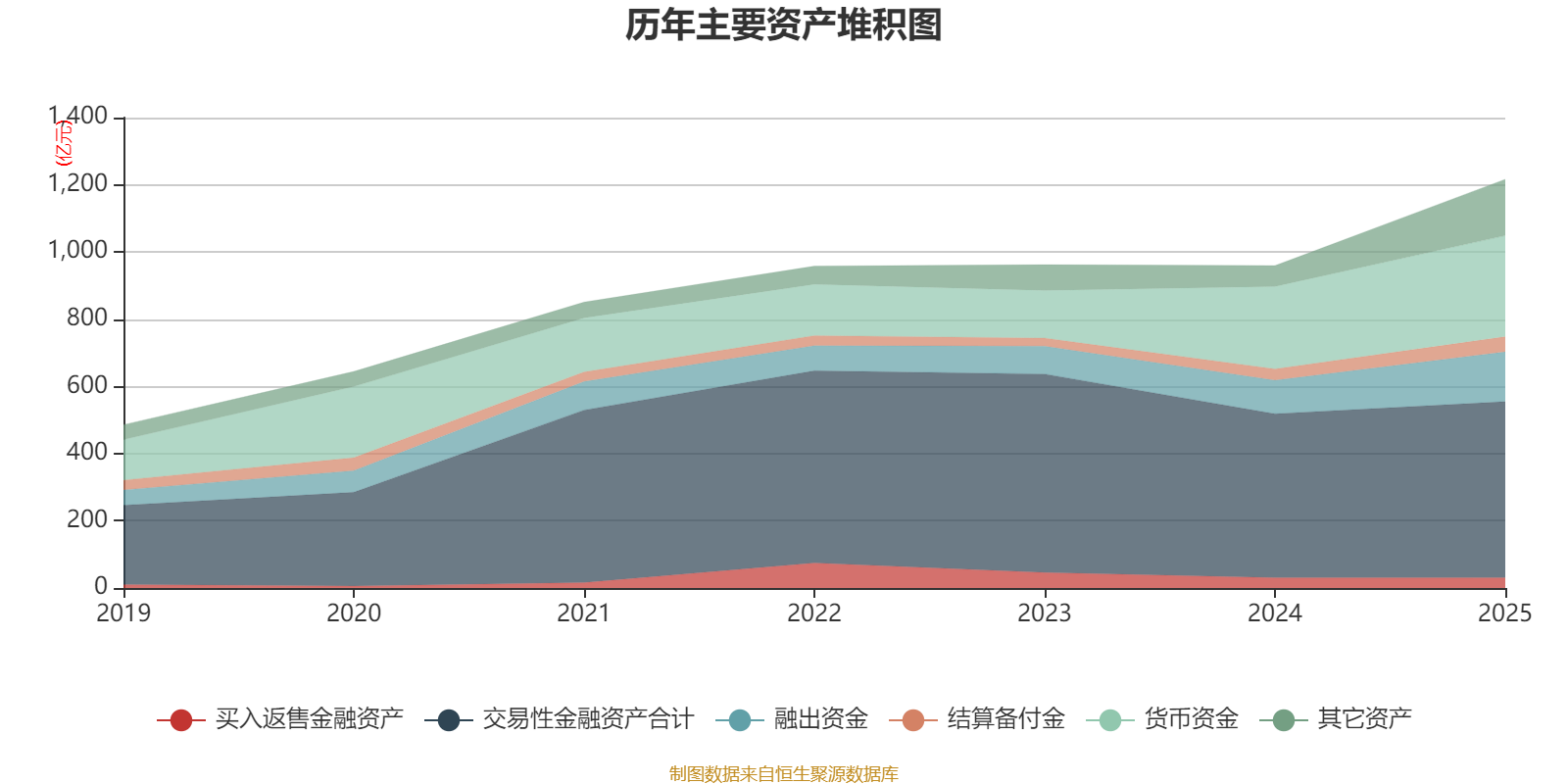 资产重大变化方面,截至2025年末,公司交易性金融资产合计较上年末增加7.47%,占公司总资产比重下降7.74个百分点;其他权益工具投资较上年末增加20897.1%,占公司总资产比重上升3.3个百分点;融出资金较上年末增加48.44%,占公司总资产比重上升1.78个百分点;存出保证金较上年末增加110.94%,占公司总资产比重上升1.27个百分点。