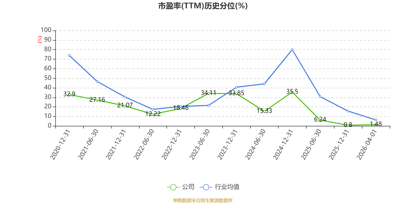 市盈率、市净率为负时,不显示当期分位数,会导致折线图中断。