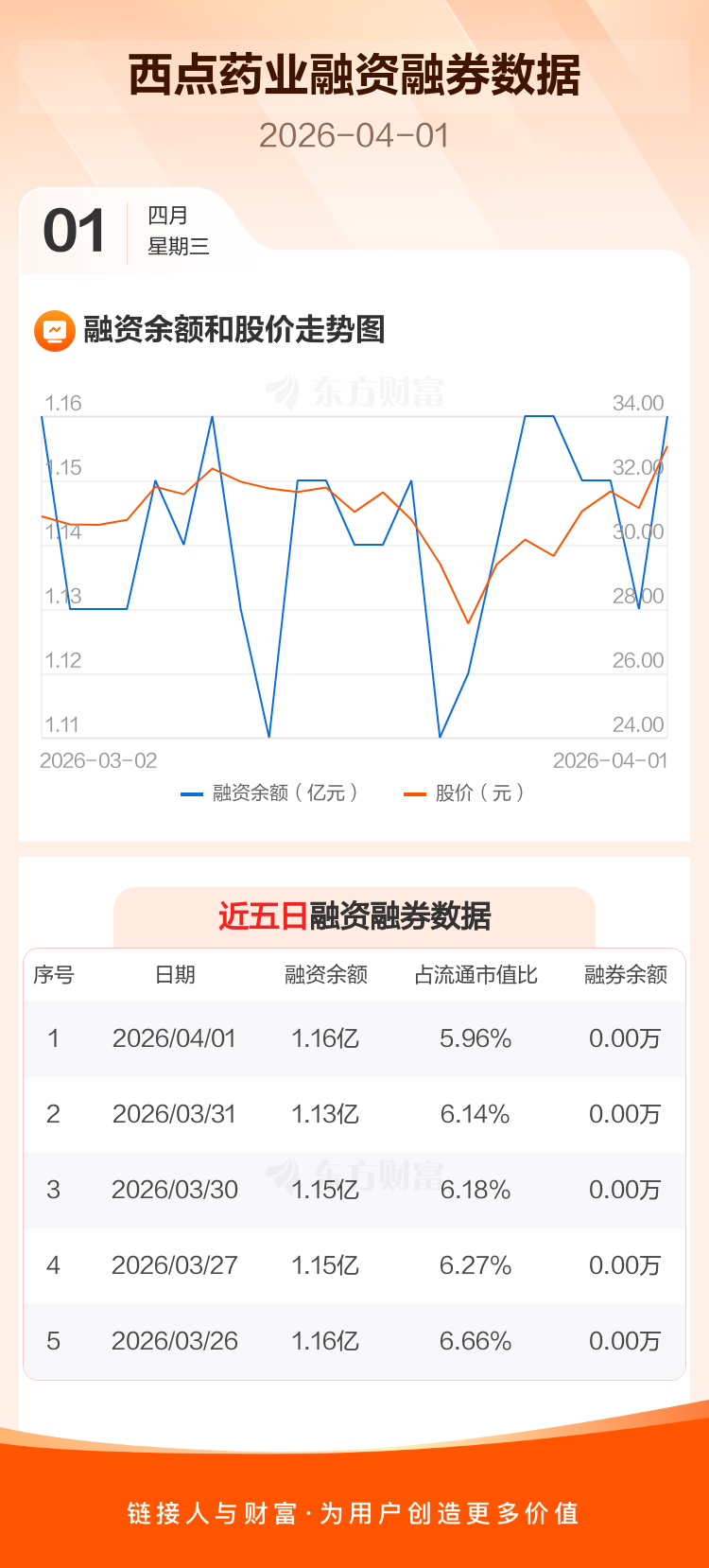 交易所最新数据显示,西点药业于2026年4月1日获融资买入2418.41万元,融资偿还2088.65万元,当日融资净买入329.76万元。目前,该股融资余额1.16亿,占流通市值比例为5.96%。