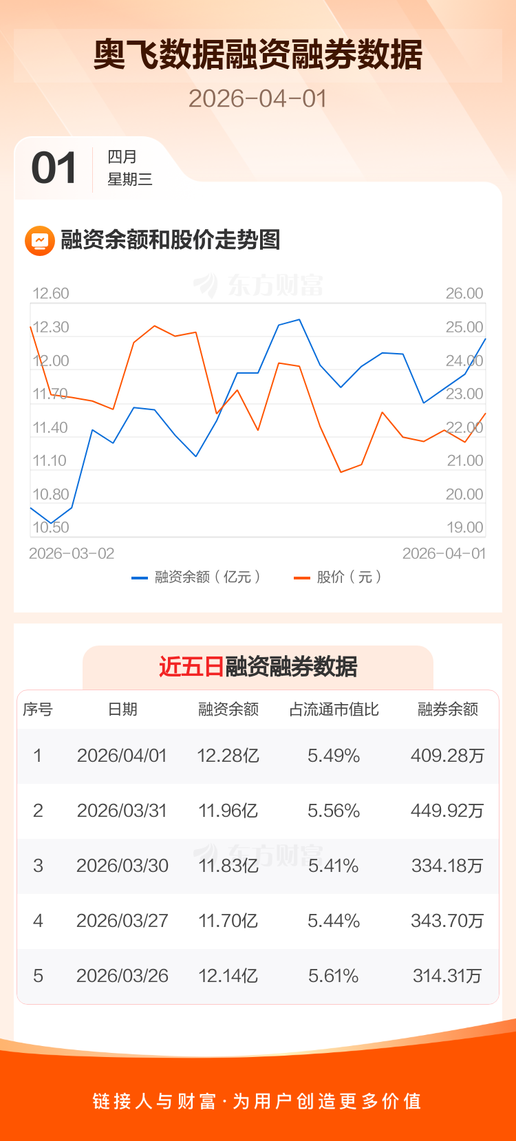 交易所最新数据显示,奥飞数据于2026年4月1日获融资买入2.30亿元,融资偿还1.98亿元,当日融资净买入3172.36万元。目前,该股融资余额12.28亿,占流通市值比例为5.49%。