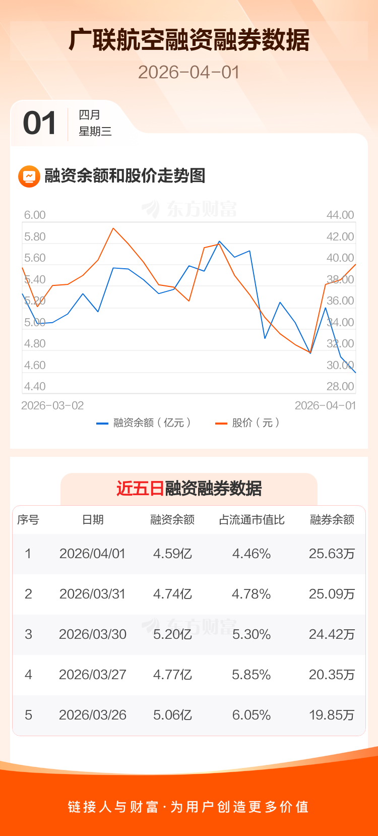 交易所最新数据显示,广联航空于2026年4月1日获融资买入1.20亿元,融资偿还1.35亿元,当日融资净偿还1500.37万元。目前,该股融资余额4.59亿,占流通市值比例为4.46%。