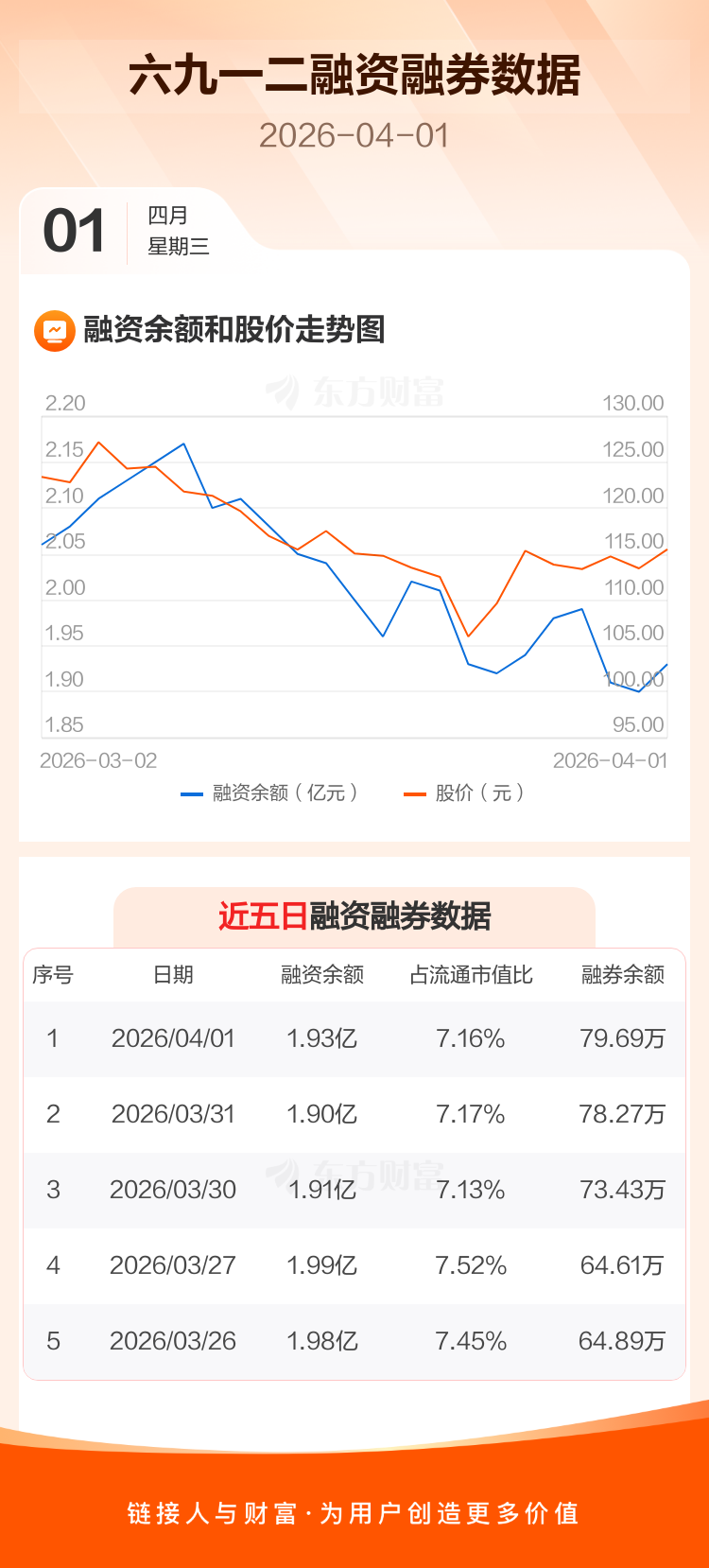 交易所最新数据显示,六九一二于2026年4月1日获融资买入982.02万元,融资偿还651.72万元,当日融资净买入330.29万元。目前,该股融资余额1.93亿,占流通市值比例为7.16%。