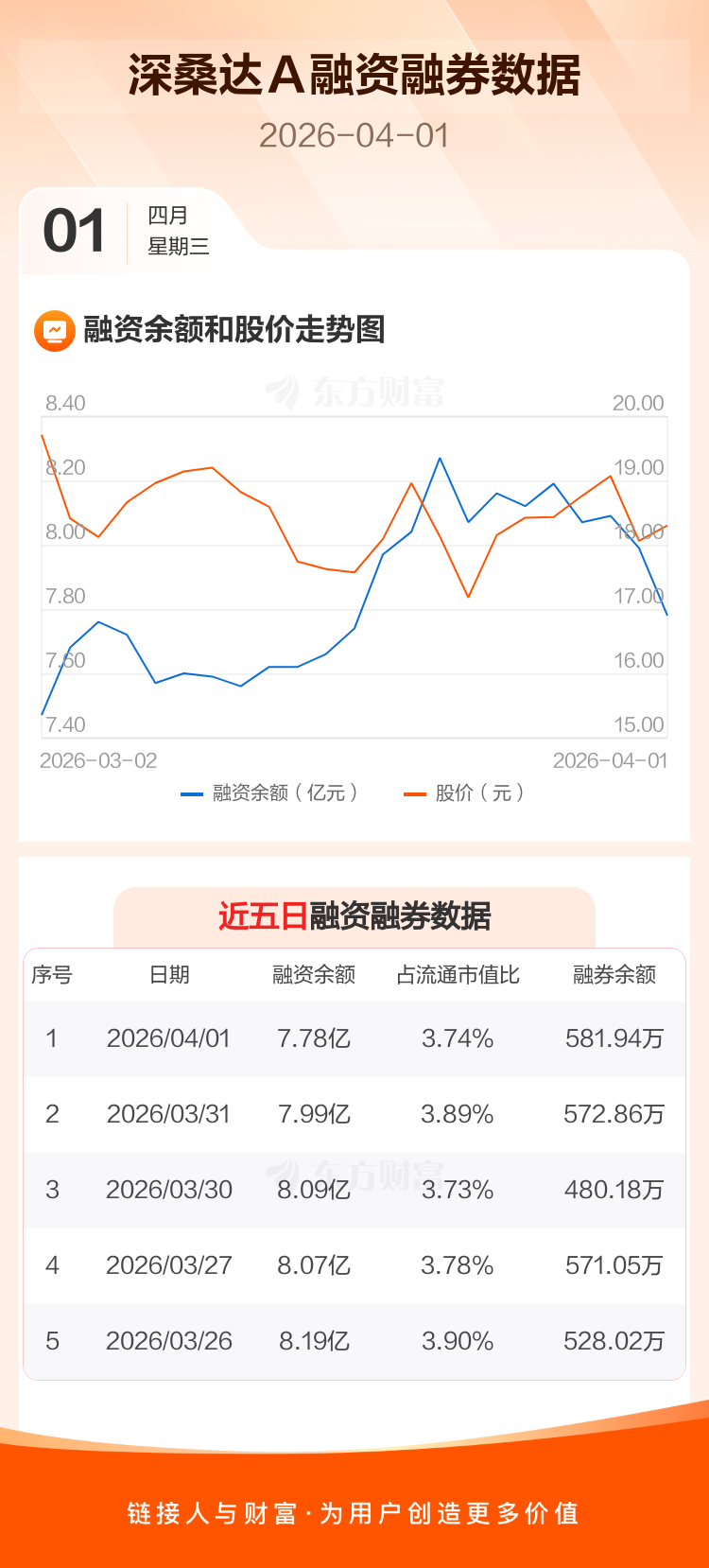 交易所最新数据显示,深桑达A于2026年4月1日获融资买入3745.96万元,融资偿还5791.18万元,当日融资净偿还2045.22万元。目前,该股融资余额7.78亿,占流通市值比例为3.74%。