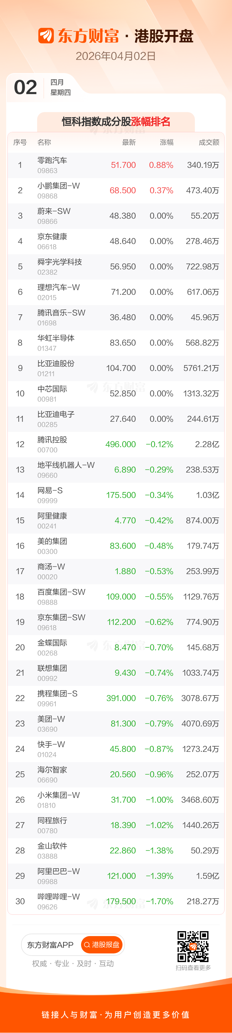 4月2日港股开盘:恒指低开0.16% 恒安国际领跌成分股