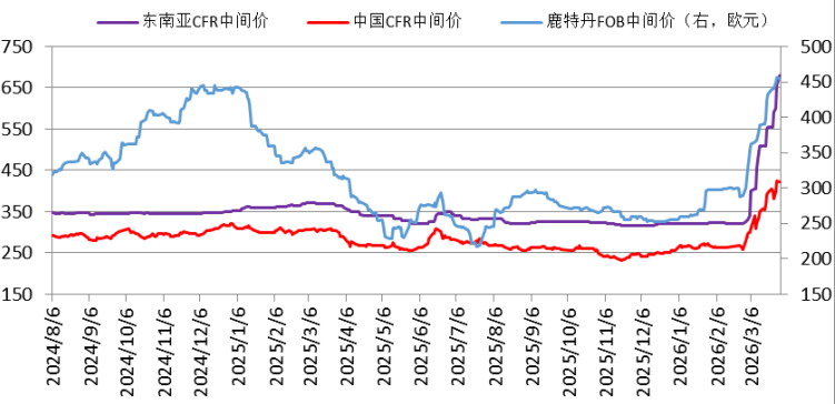自中东地缘冲突爆发以来,东南亚国家、印度等海外货源价格的上涨幅度更大,内外盘甲醇高价差使区域套利活跃度明显提升,3—4月国内转出口量大幅增加,港口去库速度加快。根据隆众资讯统计,截至3月25日,中国甲醇港口样本库存为115.55万吨,较中东地缘冲突爆发前下降29万吨。