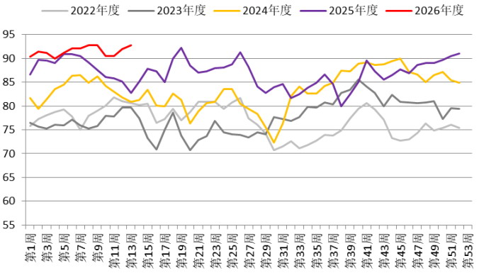 图为国内甲醇装置开工率(单位:%)