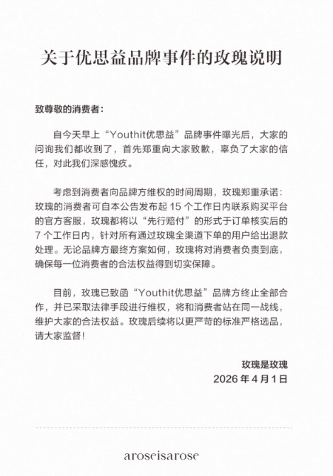 章小蕙、李若彤致歉并公布优思益售后方案:全额退款