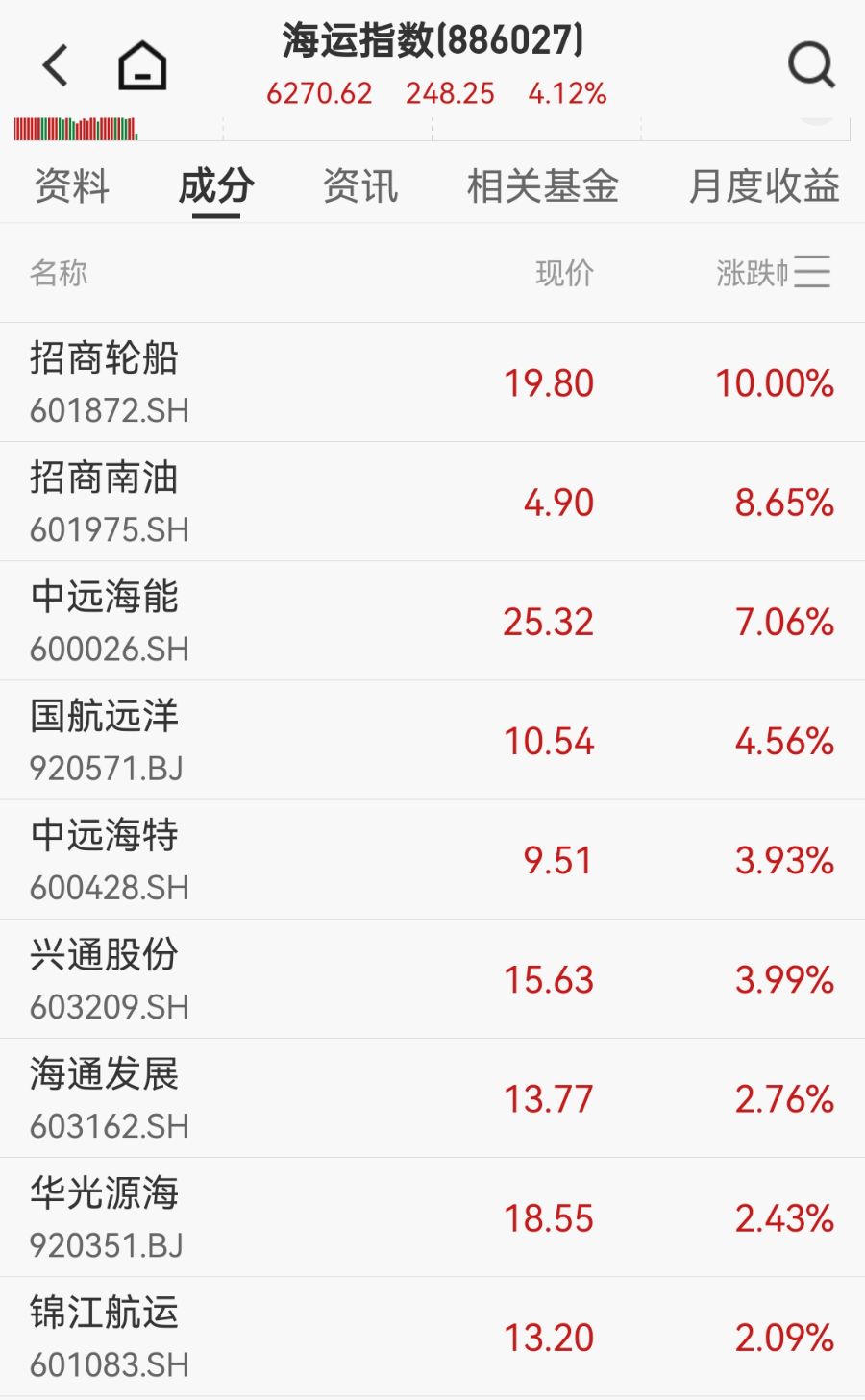 海运板块方面,招商轮船涨停,招商南油、中远海能、国航远洋等跟涨。