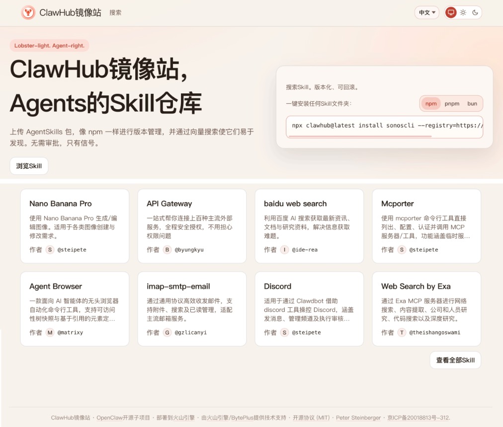 养虾火爆Skills限速?“ClawHub中国镜像站”上线