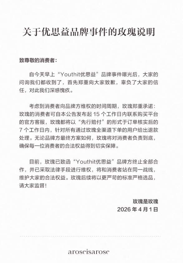 李若彤等就带货优思益致歉!售后方案公布:全额退款