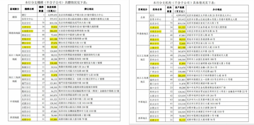 此前,光大银行H股年报将前述分行的资产规模标注为395.4亿元、2866.99亿元、598.36亿元、4431.88亿元、274.74亿元、3384.88亿元、518.78亿元、1458.84亿元。