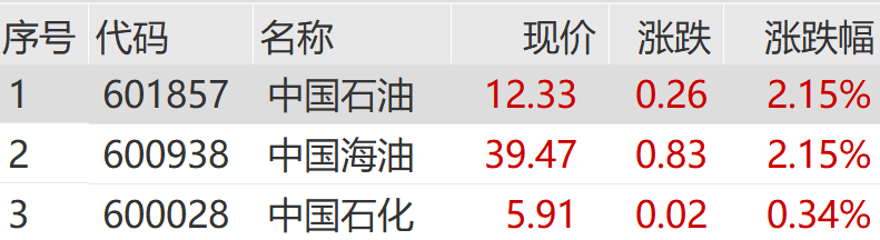 “三桶油”跟涨,中国石油、中国海油涨超2%。