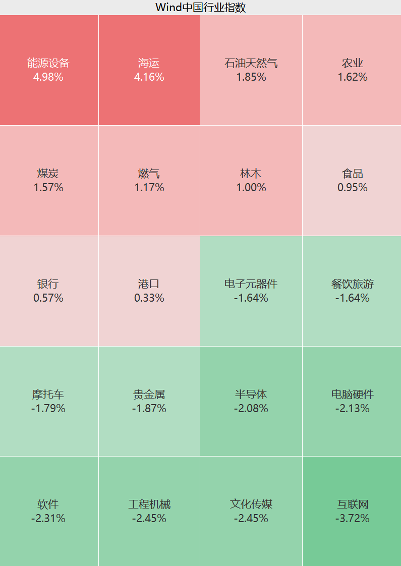 盘面上,上午石油石化、航运、农业、煤炭等板块走强,油气开采、锂矿、生物育种、猪产业等方向活跃;计算机、传媒、电子等板块走弱,AI算力、玻璃纤维等方向回调。
