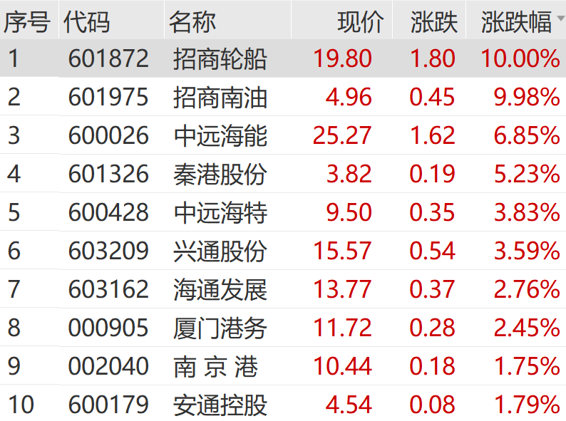与此同时,上午A股航运板块再度走强,招商轮船两连板,招商南油涨停,中远海能、秦港股份等跟涨。