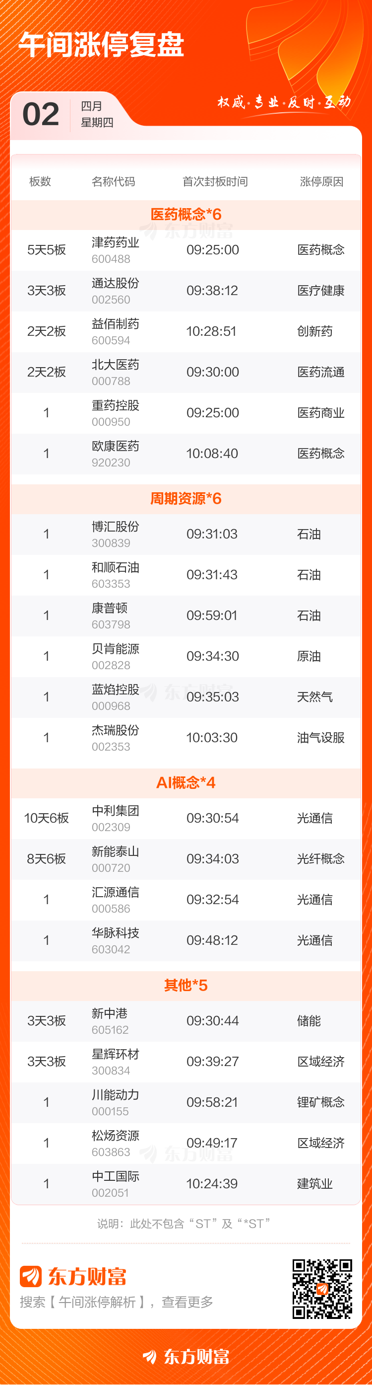 4月2日午间涨停复盘:23股涨停 津药药业5天5板