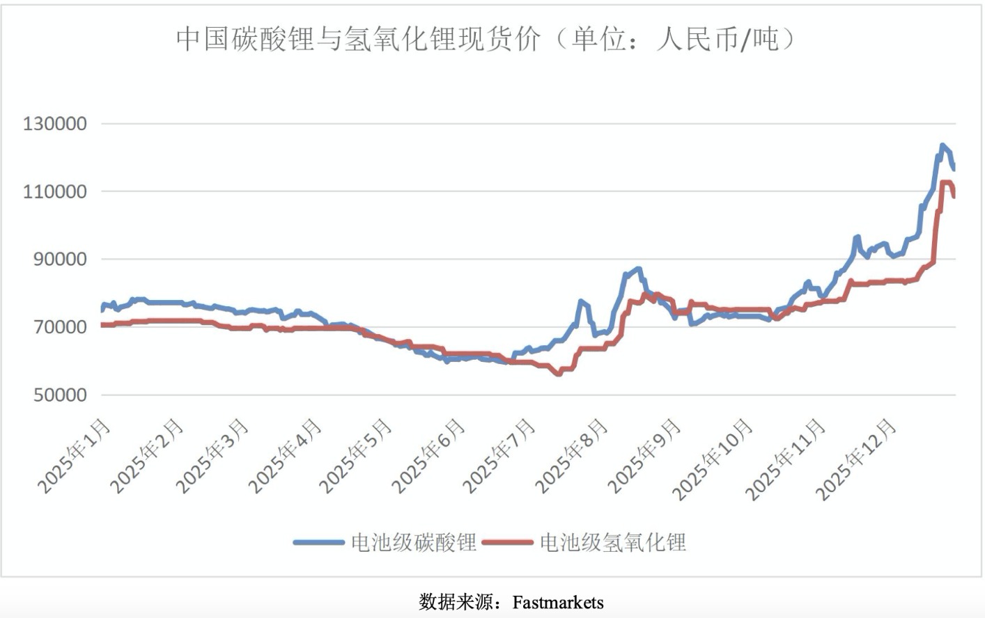 2025年,全球锂价呈现先抑后扬以及年末震荡回升的态势。