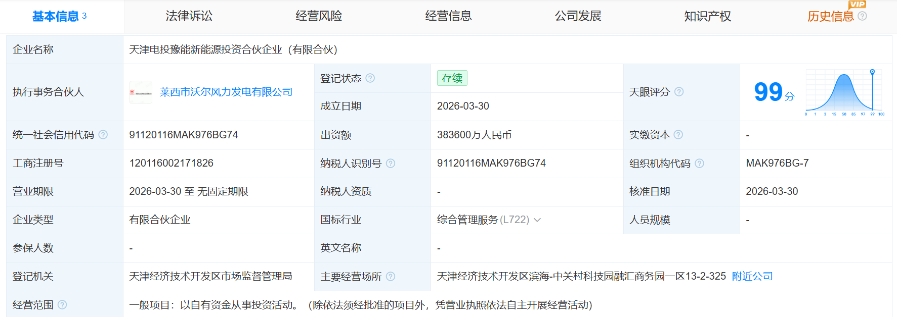 天津电投豫能新能源投资合伙企业成立,出资额38.36亿元