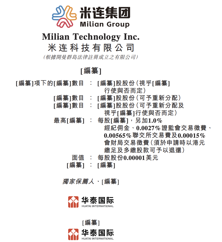 4月1日,据港交所披露,米连科技有限公司向港交所提交上市申请书,独家保荐人为华泰国际。