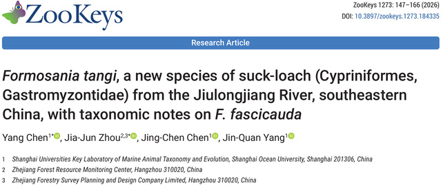 目前,文乔缨口鳅的模式标本已保存于上海海洋大学朱元鼎水生生物博物馆,相关研究数据将为后续保护工作提供基础。该研究由上海海洋大学、浙江省森林资源监测中心等单位科研人员合作完成,硕士研究生陈阳与工程师周佳俊为共同第一作者。
