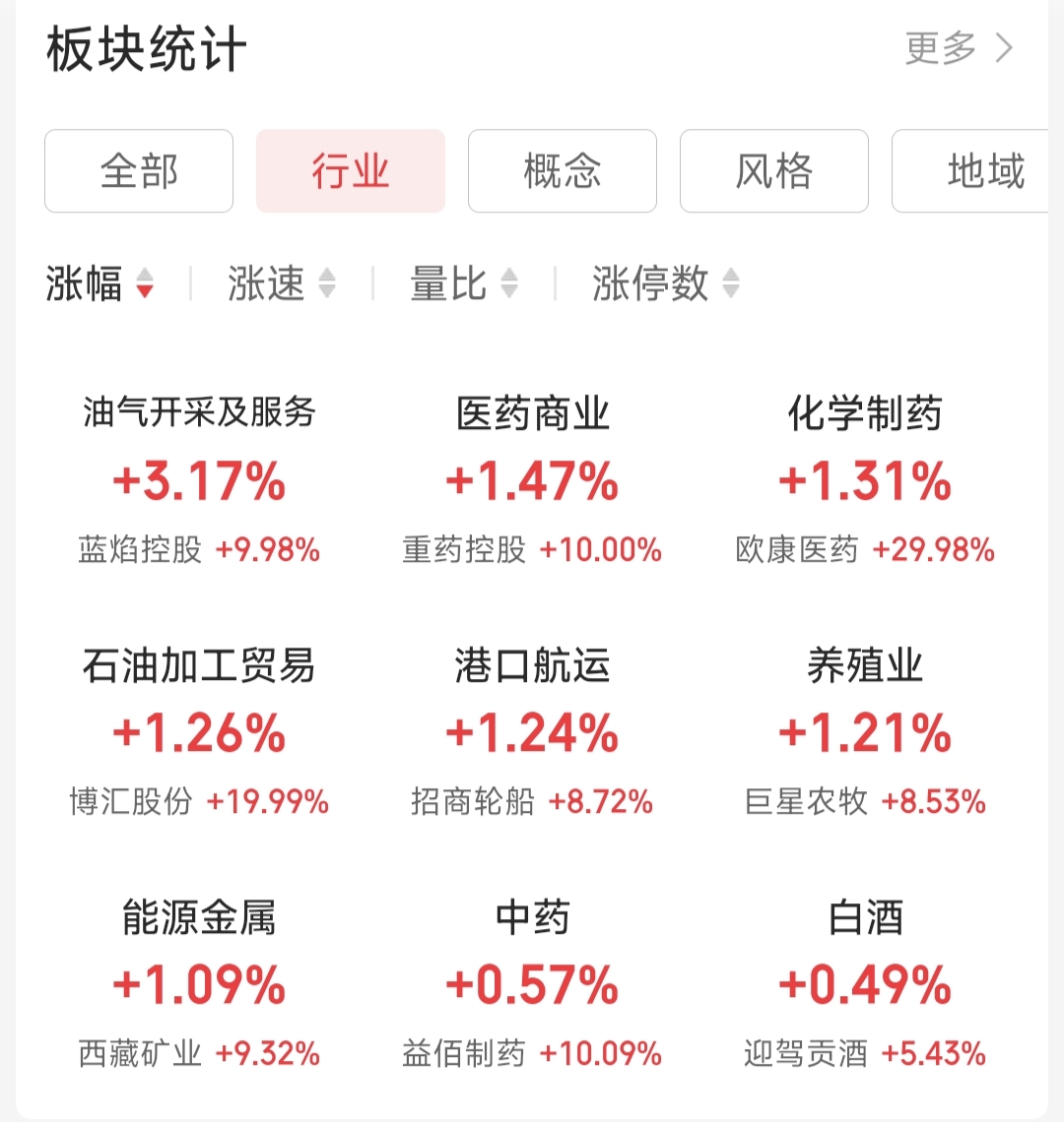 行业热点方面,数据显示,截至4月2日上午收盘,在同花顺A股二级行业中,油气开采及服务行业涨幅达到3.17%,位居榜首。医药板块集体活跃,医药商业和化学制药行业涨幅均超1%。此外,通信服务、贵金属和影视院线等行业跌幅居前。