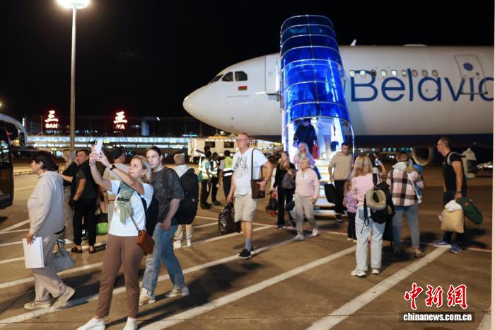 资料图:“三亚=明斯克”航线旅客下机。三亚市旅游发展局供图