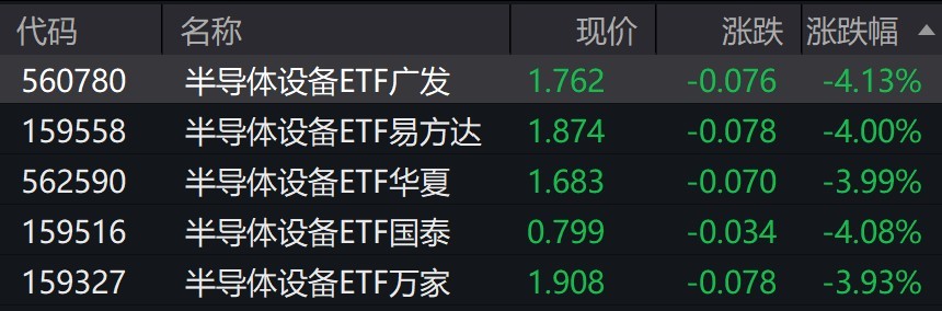 受盘面影响,半导体设备相关ETF跌约4%。