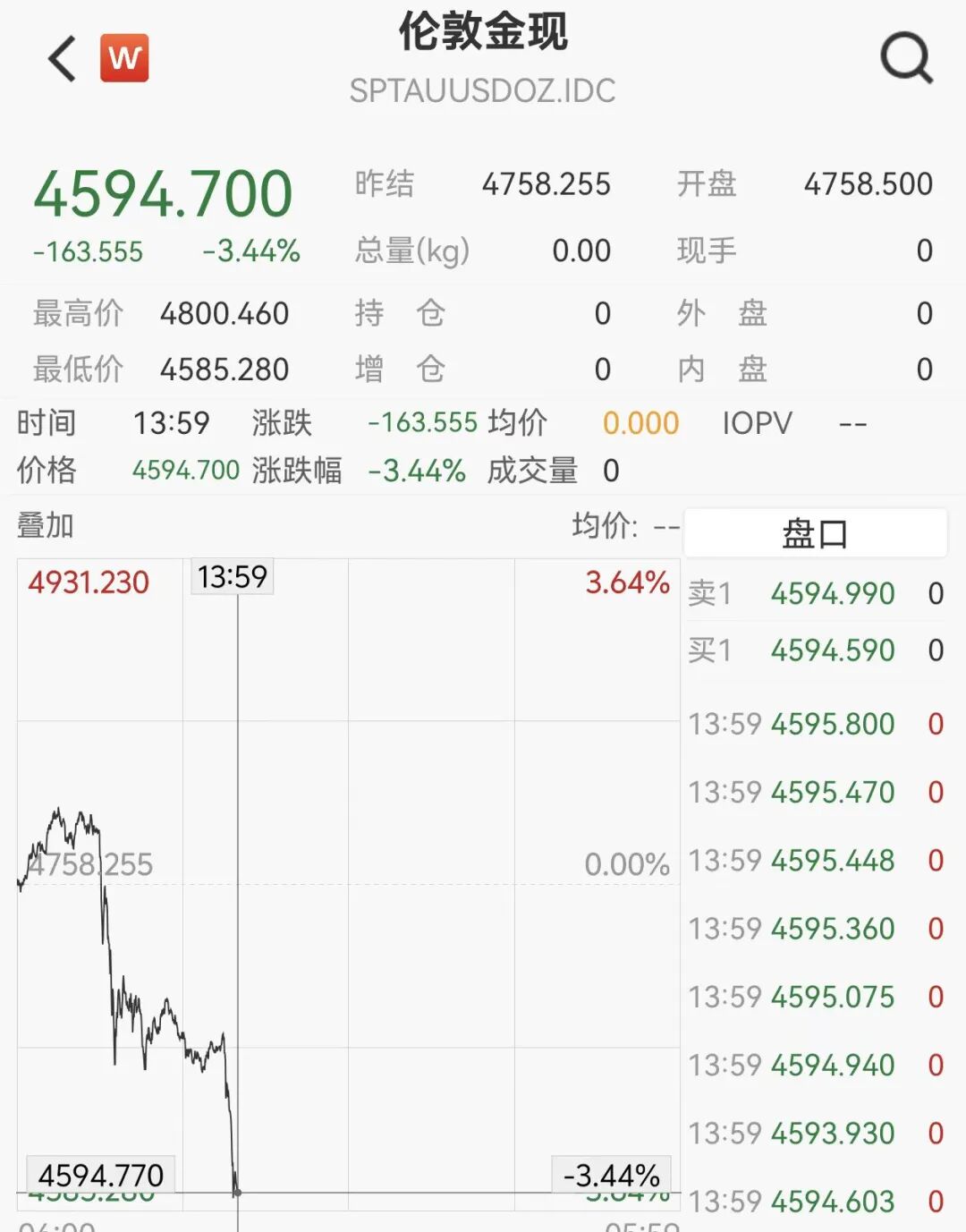 现货黄金失守4600美元,日内重挫160美元