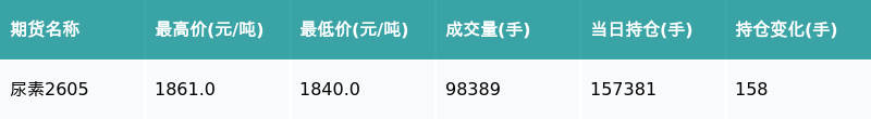 南财智讯4月2日电,盘后期货数据显示,郑州商品交易所的尿素主力合约收跌0.38%,收盘报1850.0元/吨,日内资金流入54.03万元。其他相关指标见下表: