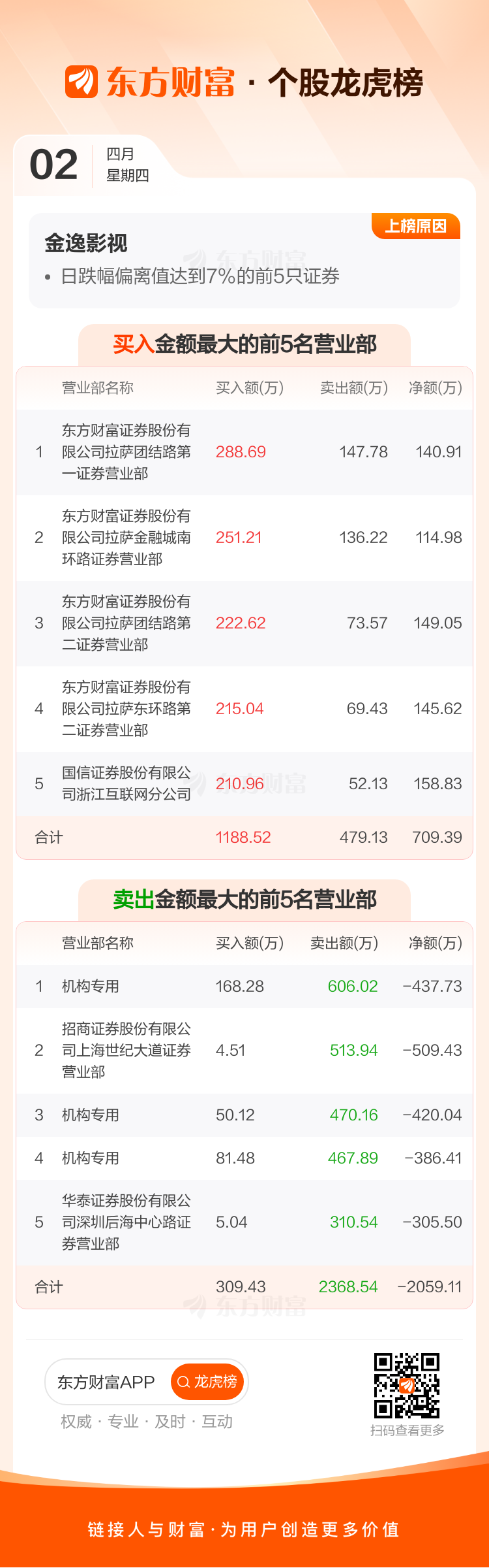 金逸影视(002905)龙虎榜数据(04-02)