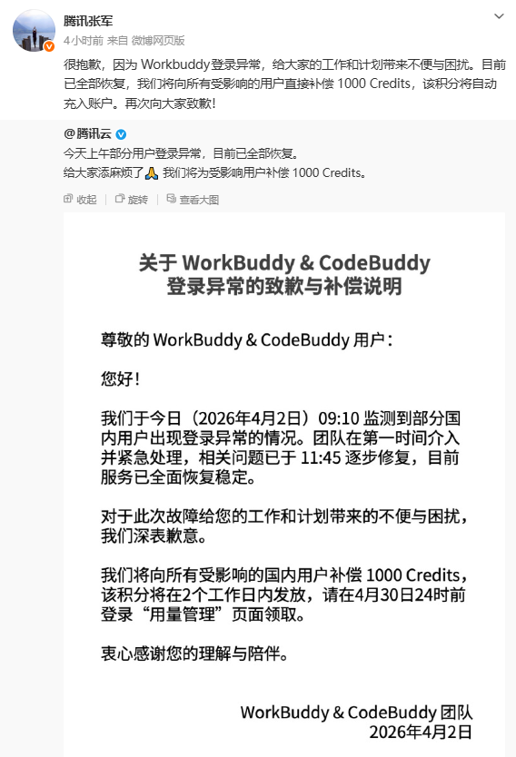 腾讯云:致歉并公布补偿方案