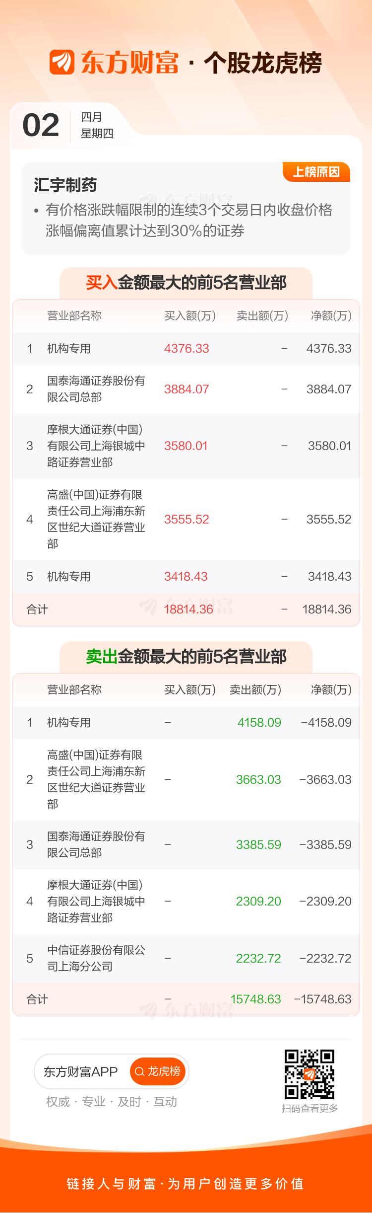 汇宇制药(688553)龙虎榜数据(04-02)