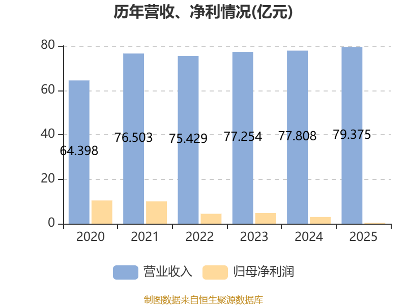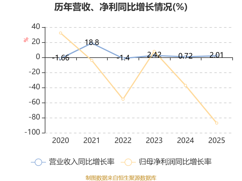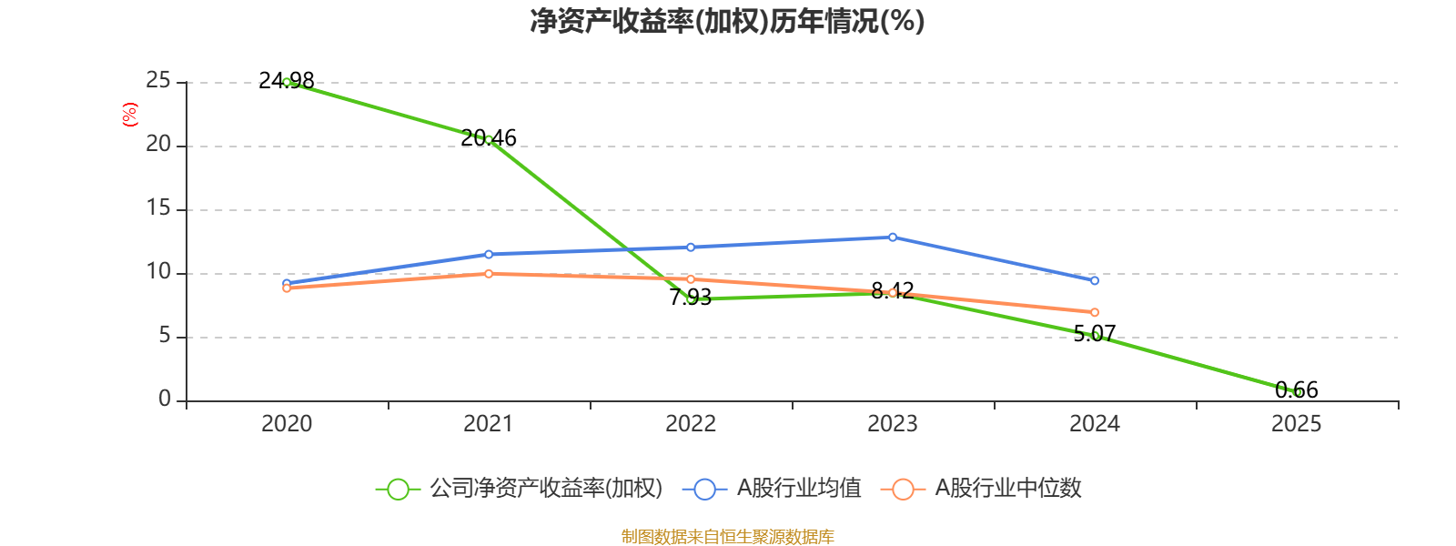 数据显示,2025年公司平均净资产收益率为0.66%,较上年同期下降4.41个百分点。
