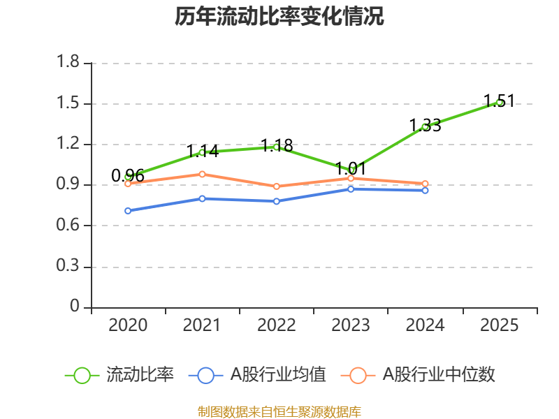 2025年,公司流动比率为1.51,速动比率为1.45。