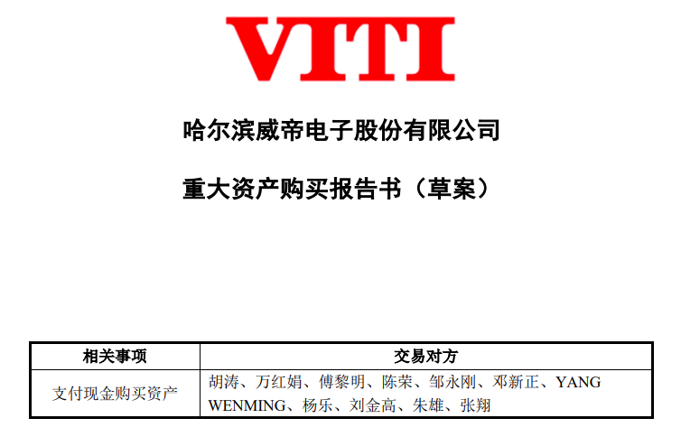 4月1日晚间,威帝股份发布《重大资产购买报告书(草案)》,公司拟以支付现金方式购买江苏智越天成企业管理有限公司100%股权及江苏玖星精密科技股份有限公司44.8506%股权,交易总对价约10.95亿元。交易完成后,威帝股份将直接和通过智越天成间接持有玖星精密合计90.9670%的股权。