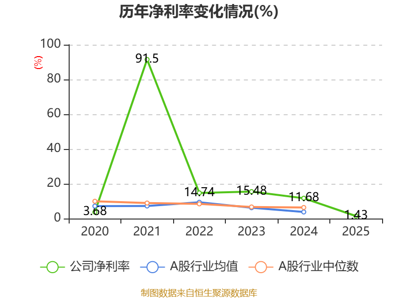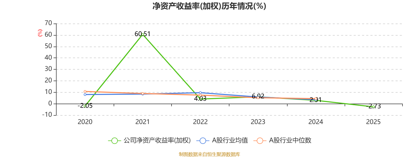 数据显示,2025年公司平均净资产收益率为-2.73%,较上年同期下降5.64个百分点。