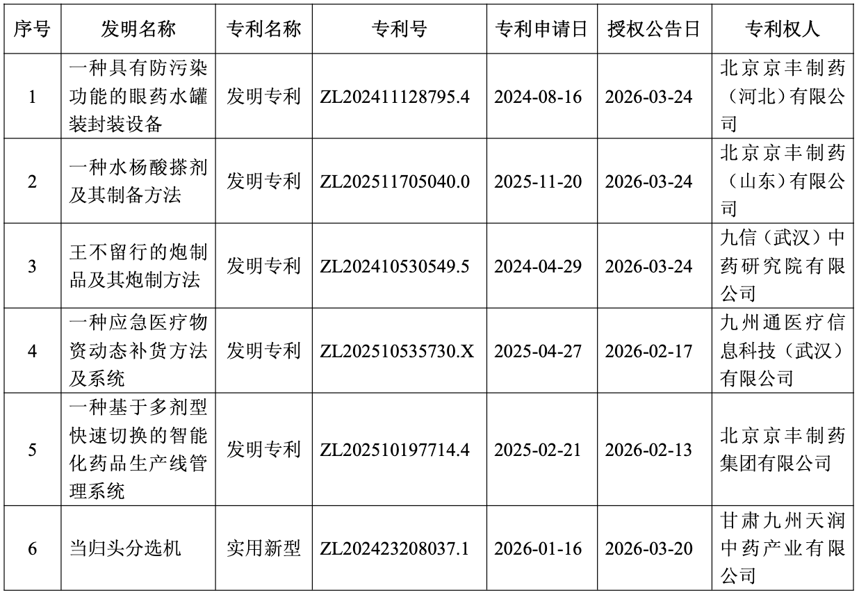 九州通:子公司获10项新专利,助力核心竞争力提升