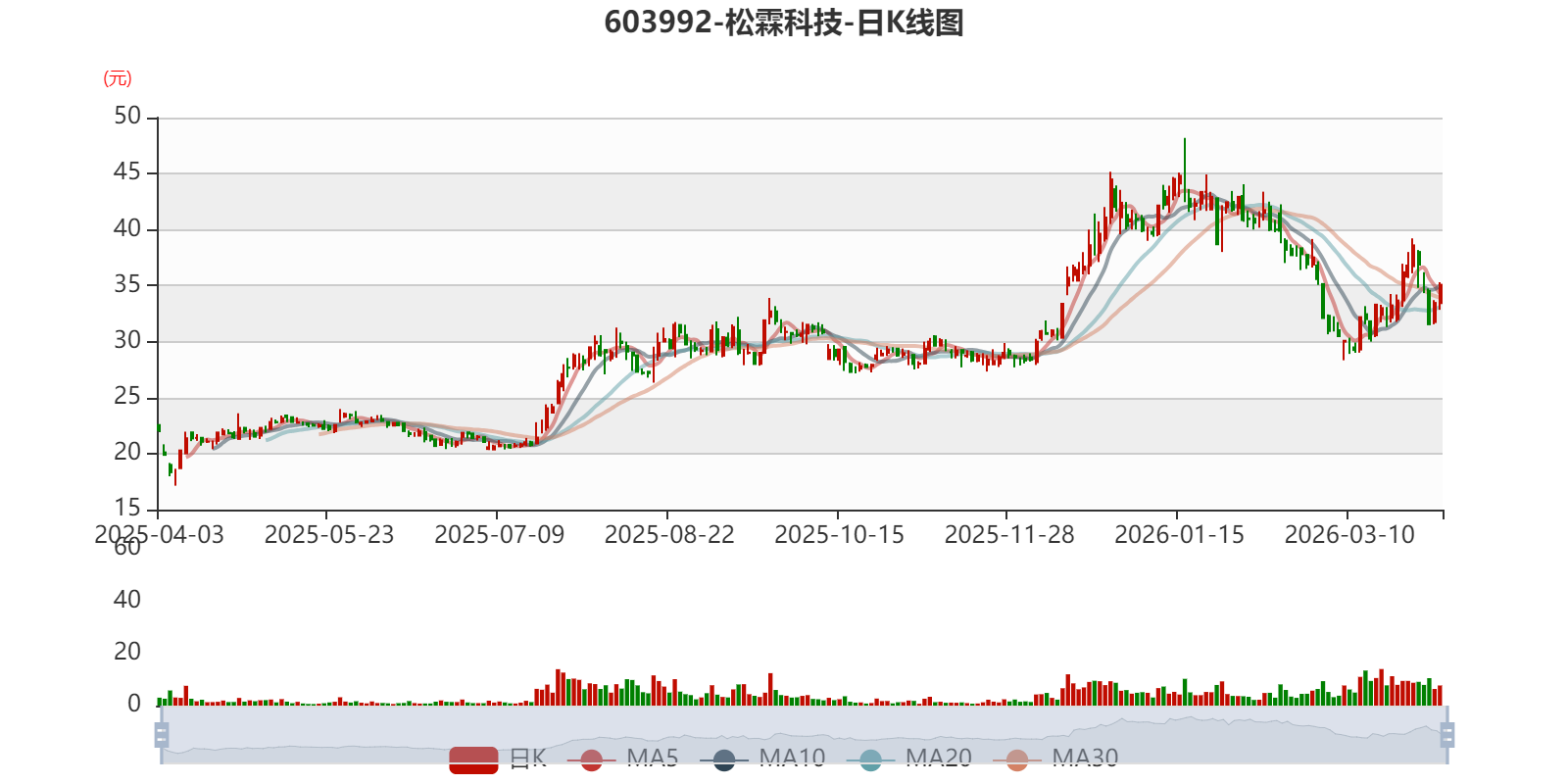 中证智能财讯松霖科技(603992)4月2日晚间披露业绩预告,预计2026年一季度归母净利润9100万元至1.1亿元,同比增长100.2%-141.99%;扣非净利润预计8300万元至1.02亿元,同比增长130.2%-182.9%。以4月2日收盘价计算,松霖科技目前市盈率(TTM)约为57.56倍-61.91倍,市净率(LF)约4.68倍,市销率(TTM)约5.93倍。