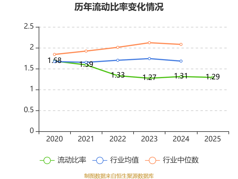 2025年,公司流动比率为1.29,速动比率为0.65。