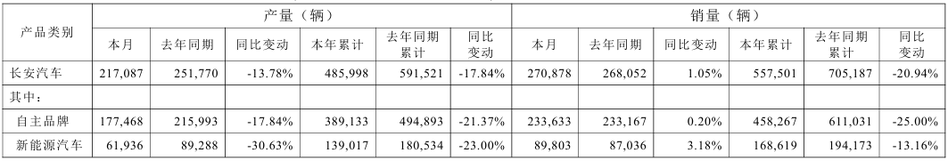 长安汽车:3月份产量降13.78% 销量增1.05%