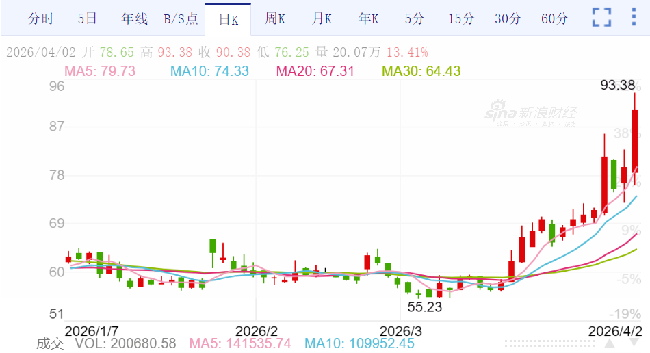 4月2日,三生国健(688336.SH)以90.38元/股收盘,涨幅达13.41%,这是三生国健(688336.SH)