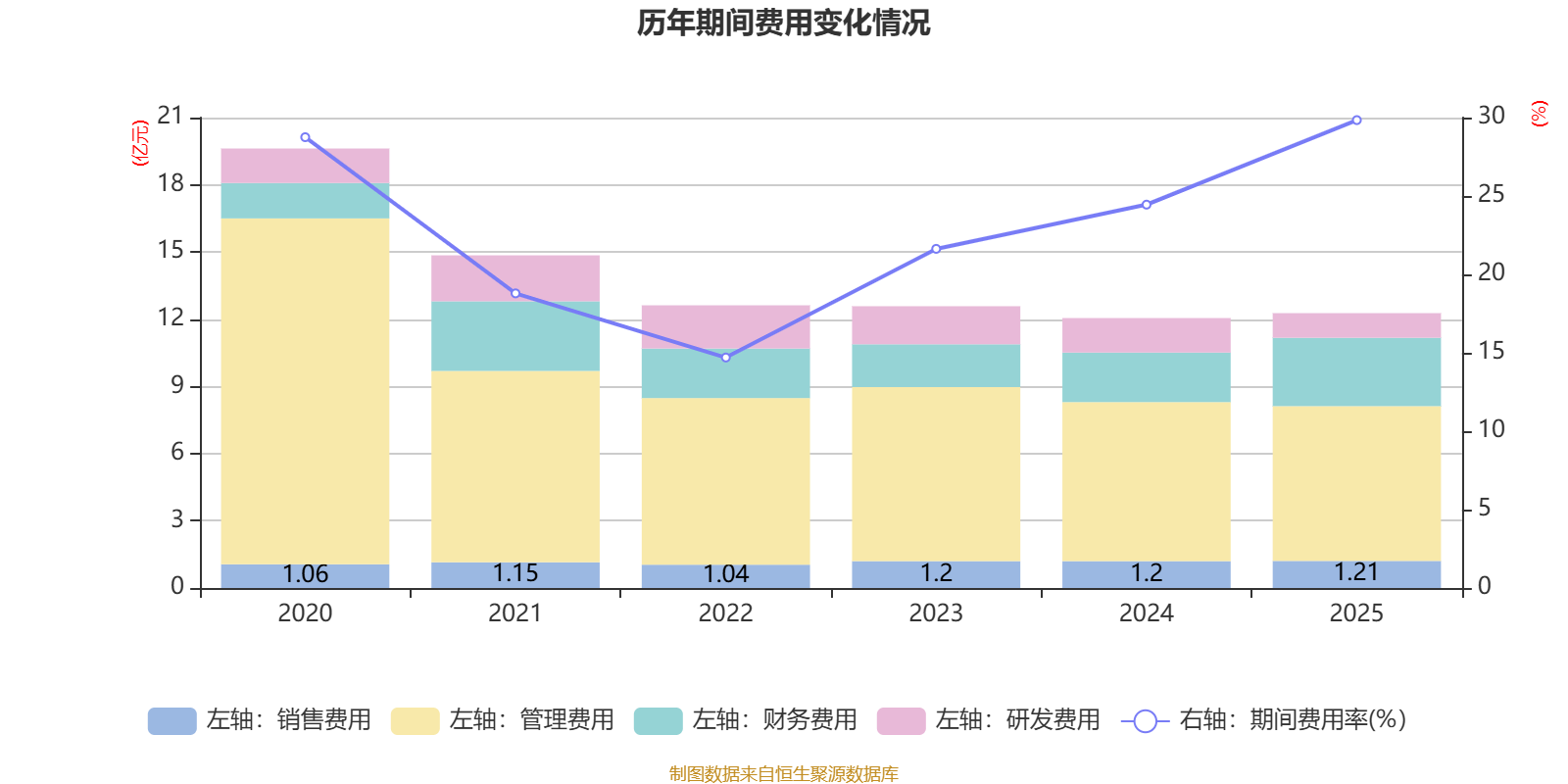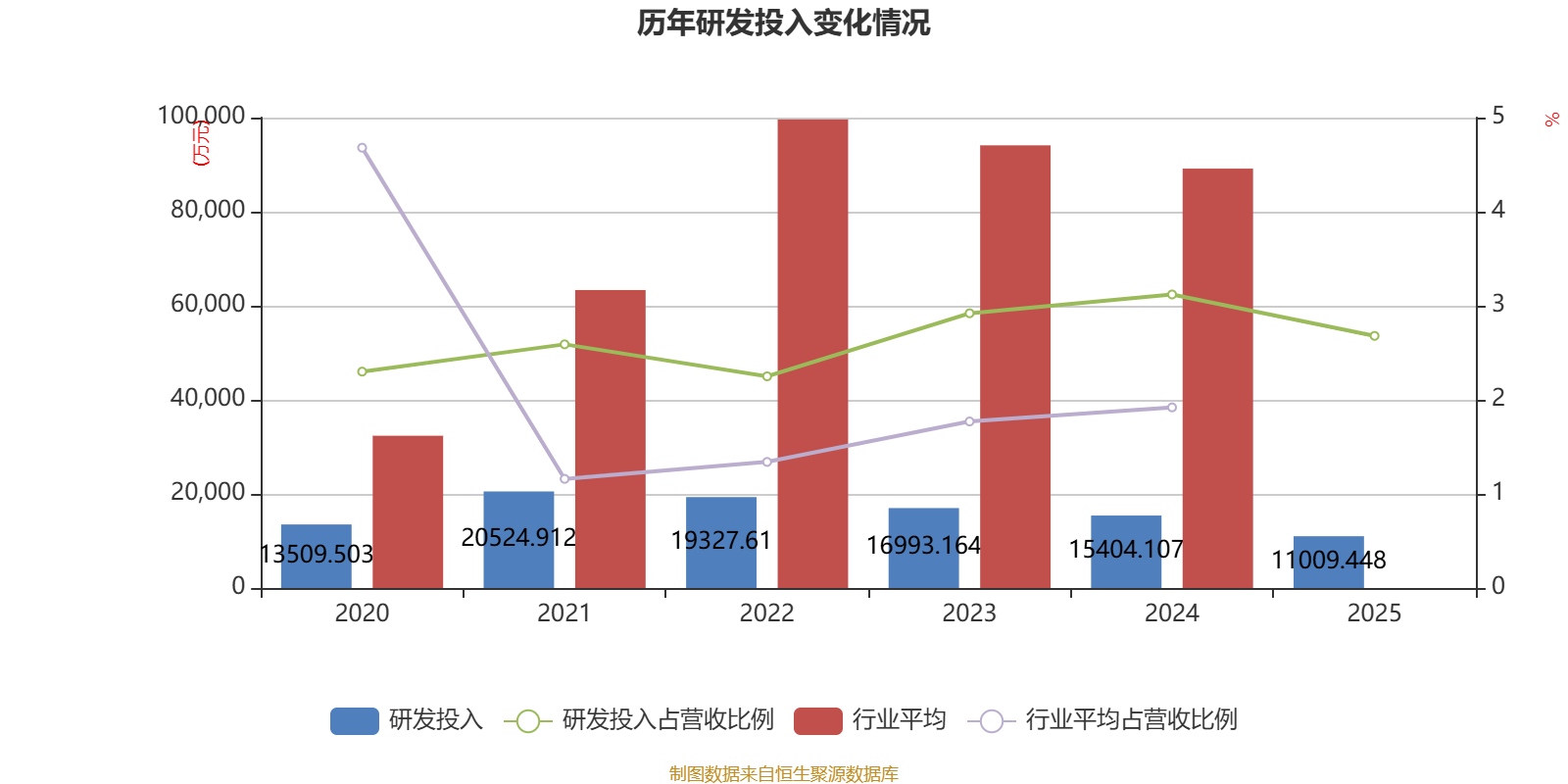 2025年全年,公司研发投入金额为1.1亿元,同比下降28.53%;研发投入占营业收入比例为2.68%,相比上年同期下降0.44个百分点。此外,公司全年研发投入资本化率为0%。