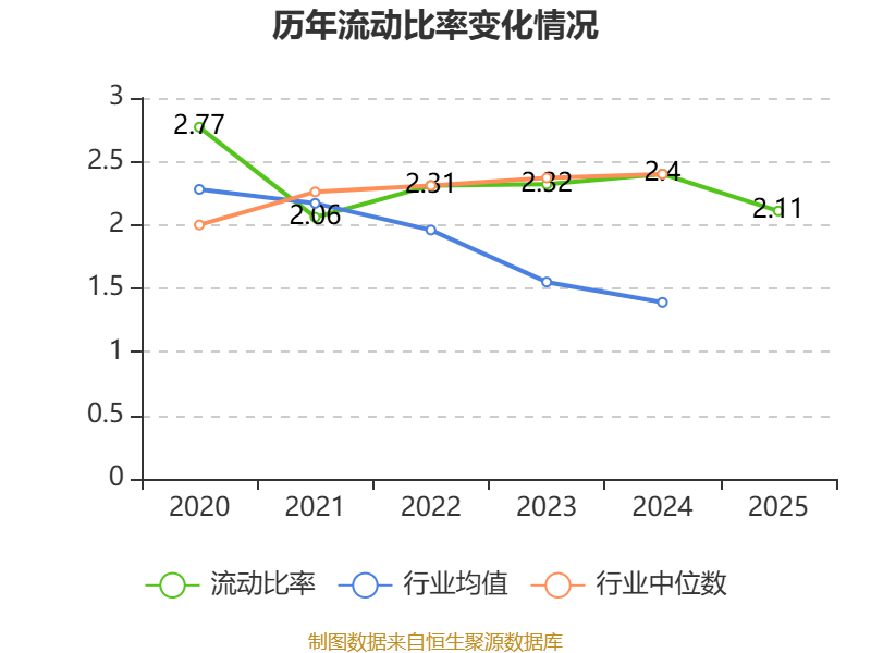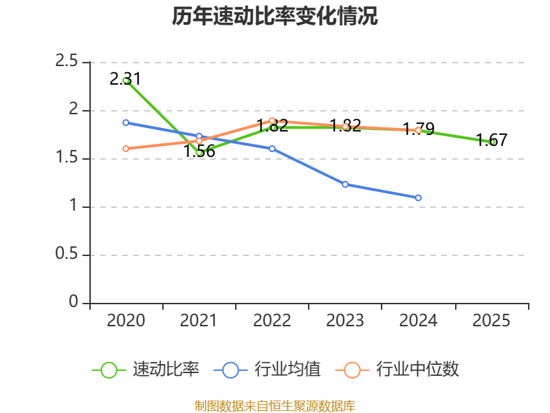 2025年,公司流动比率为2.11,速动比率为1.67。