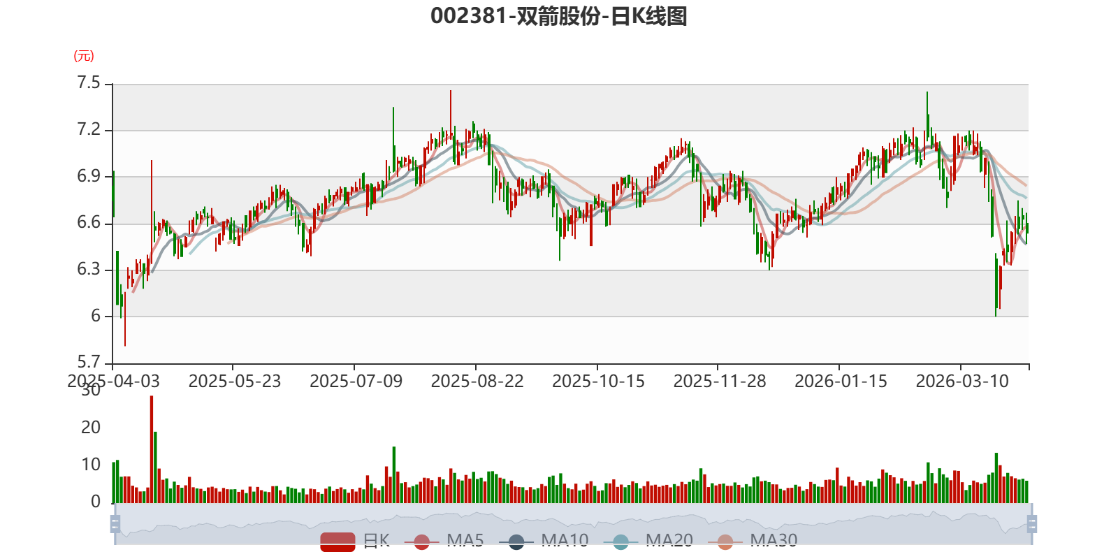 以4月2日收盘价计算,双箭股份目前市盈率(TTM)约为41.22倍,市净率(LF)约1.25倍,市销率(TTM)约1.01倍。