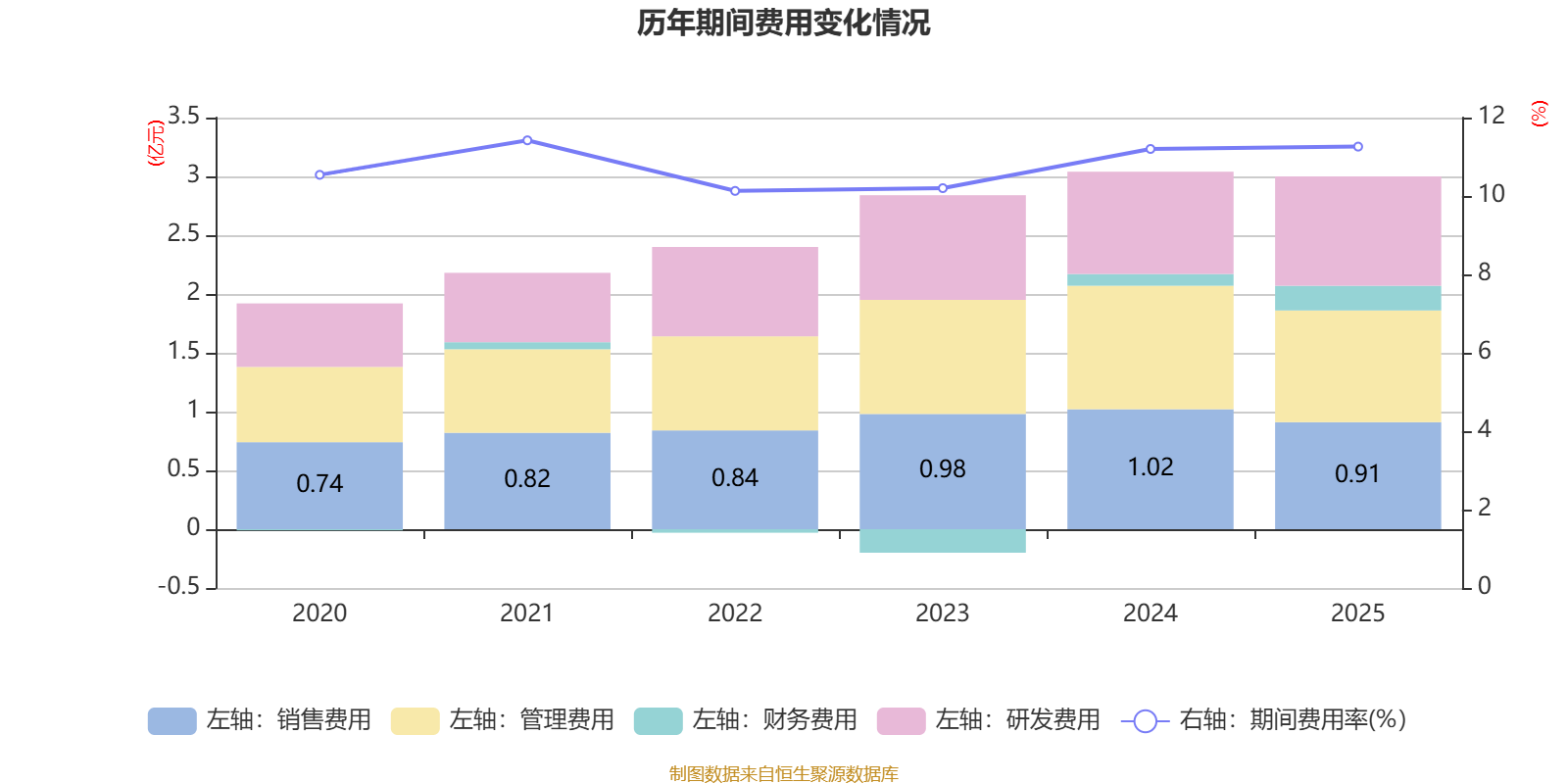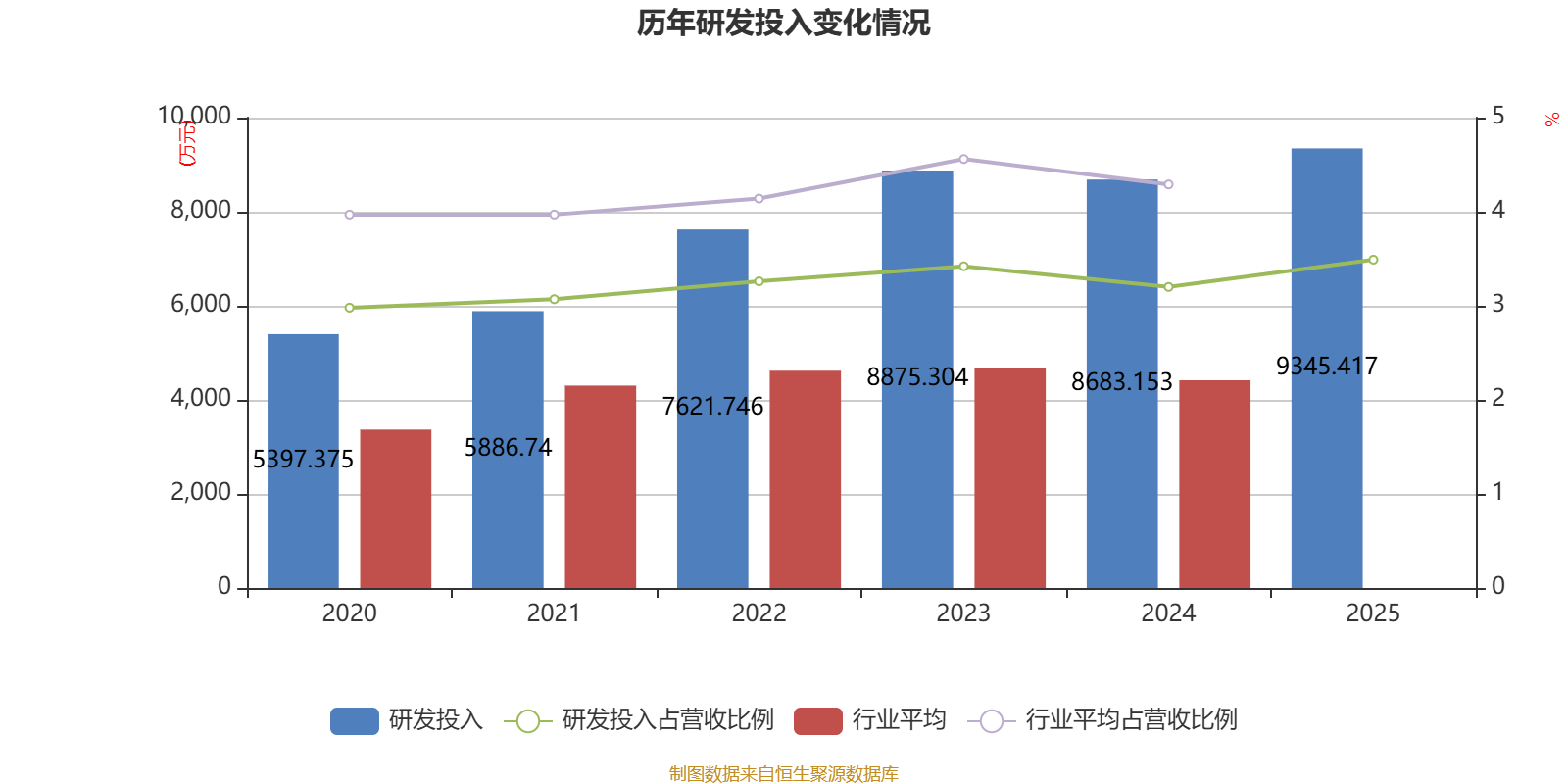 2025年全年,公司研发投入金额为9345.42万元,同比增长7.63%;研发投入占营业收入比例为3.49%,相比上年同期上升0.29个百分点。此外,公司全年研发投入资本化率为0%。