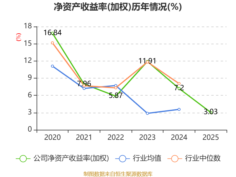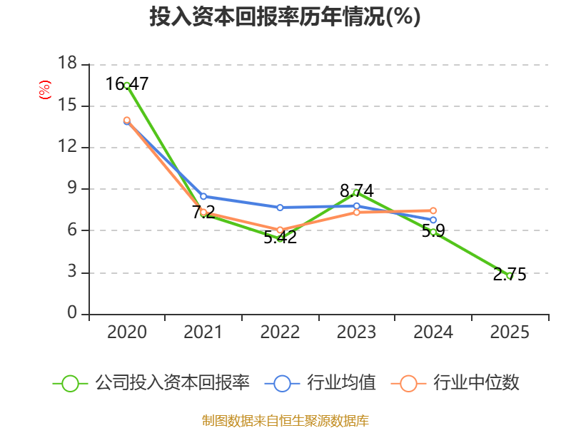 数据显示,2025年公司加权平均净资产收益率为3.03%,较上年同期下降4.17个百分点。公司2025年投入资本回报率为2.75%,较上年同期下降3.15个百分点。