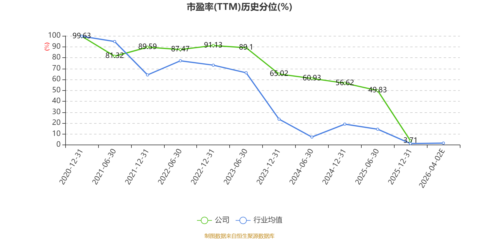 市盈率、市净率为负时,不显示当期分位数,会导致折线图中断。